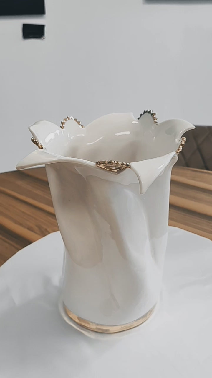 Handcrafted Porcelain Vase with 24k Gold Detail.